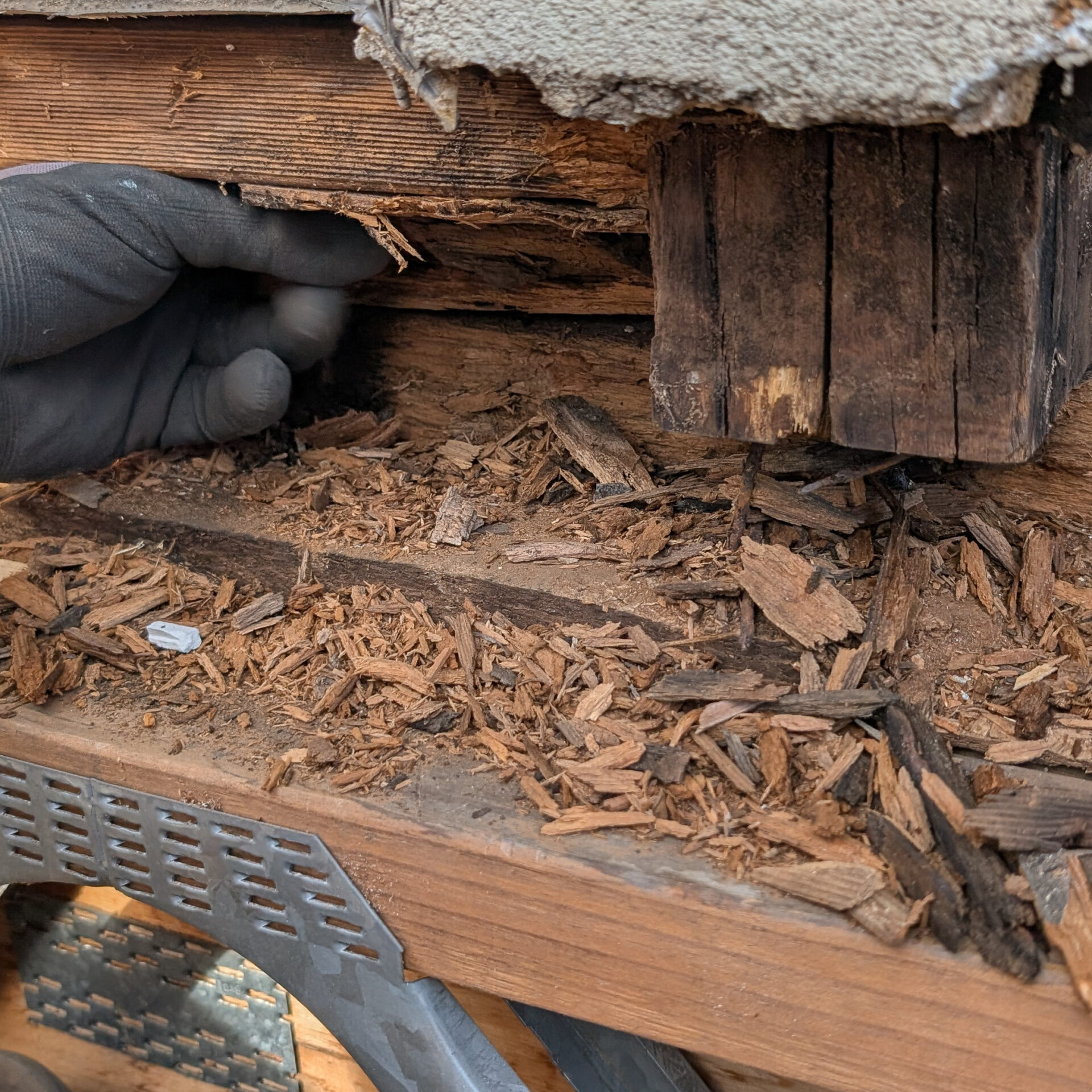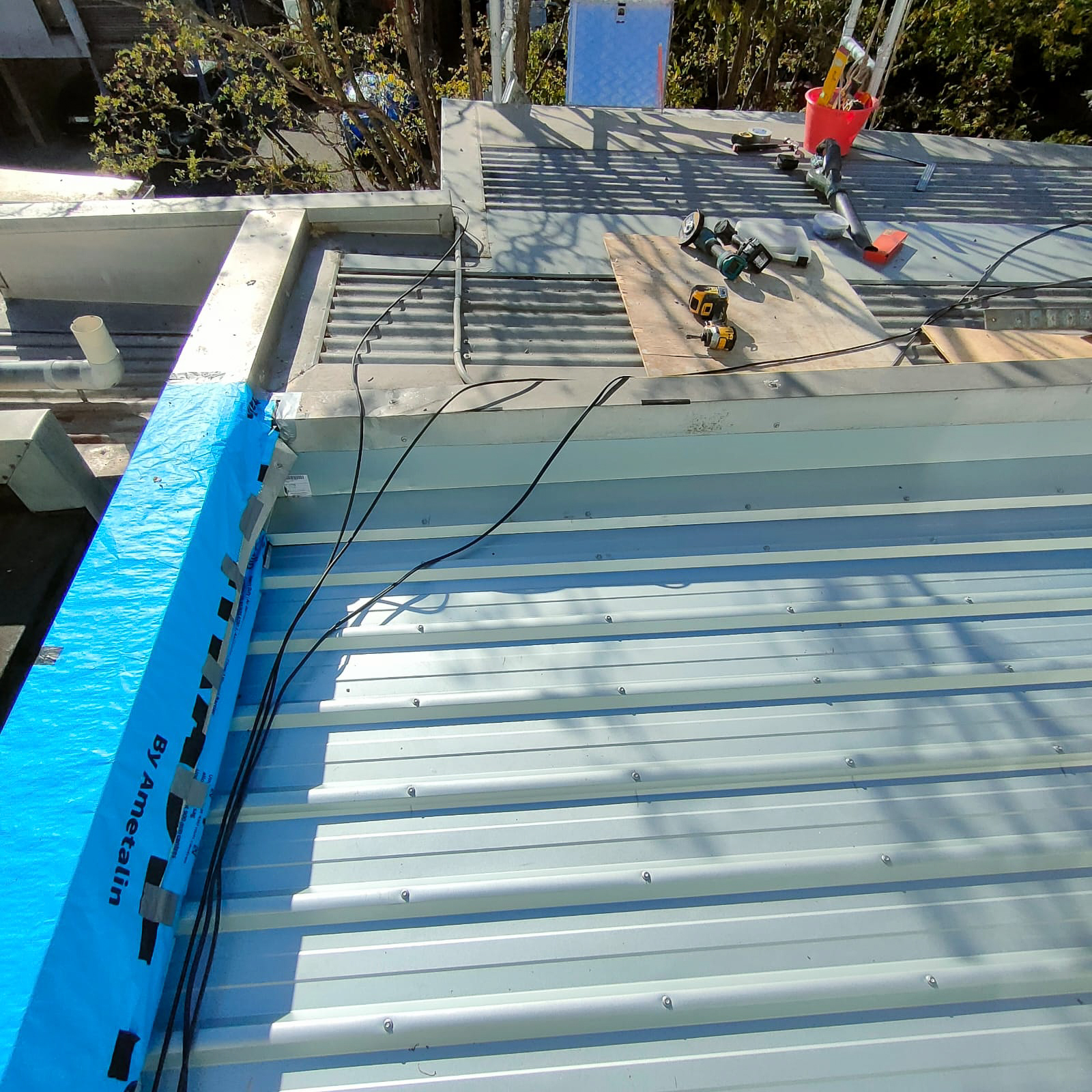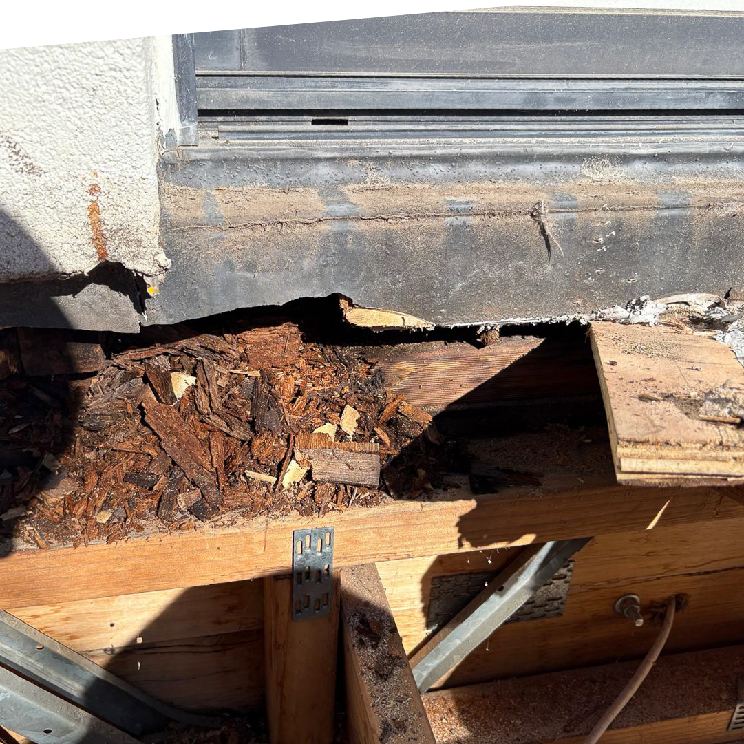 Removing the decking timber revealed one of the poorest jobs we have ever encountered: Not only was plywood used as roofing material, but the deck timbers were directly screwed into the plywood sheets. No sarking or insulation was installed. Therefore, the plywood sheets and other structural timber elements were severely degraded.